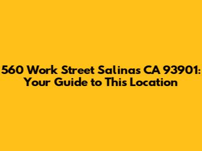 Alright, guys, let's dive into everything you need to know about 560 Work Street, Salinas, CA 93901! Whether you're curious about what businesses operate here, looking for contact information, or just trying to get a feel for the neighborhood, this guide is for you. We'll break down the key details and provide some local insights to give you the full picture. So, buckle up, and let's get started!