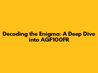 AGF100FR: Decoding The Enigma