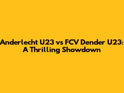 Anderlecht U23 Vs FCV Dender U23: A Thrilling Showdown