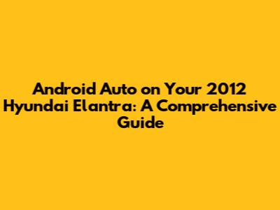 Android Auto On Your 2012 Hyundai Elantra: A Comprehensive Guide