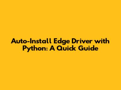 Auto-Install Edge Driver With Python: A Quick Guide