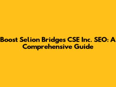 Boost Selion Bridges CSE Inc. SEO: A Comprehensive Guide