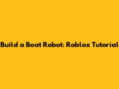 Build A Boat Robot: Roblox Tutorial