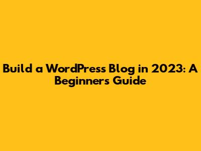 Build A WordPress Blog In 2023: A Beginner's Guide