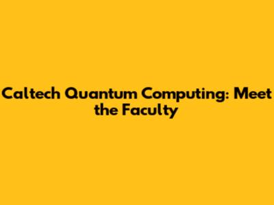 Caltech Quantum Computing: Meet The Faculty