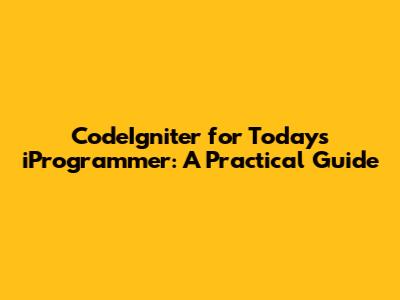 CodeIgniter For Today's IProgrammer: A Practical Guide