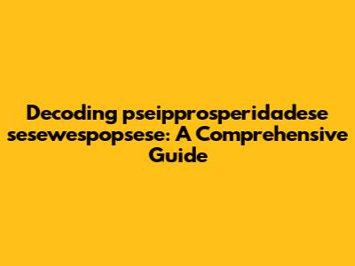 Decoding Pseipprosperidadese Sesewespopsese: A Comprehensive Guide