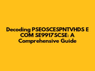 Decoding PSEOSCESPNTVHDS E COM SE9917SCSE: A Comprehensive Guide