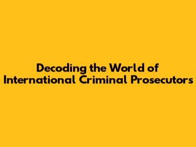 Decoding The World Of International Criminal Prosecutors