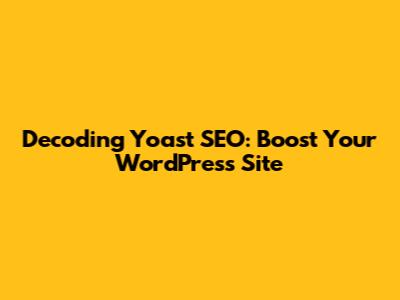 Decoding Yoast SEO: Boost Your WordPress Site