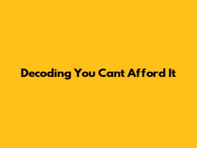 Decoding You Can't Afford It
