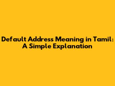 Default Address Meaning In Tamil: A Simple Explanation