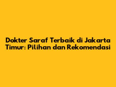 Dokter Saraf Terbaik Di Jakarta Timur: Pilihan Dan Rekomendasi