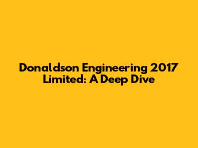 Let's explore Donaldson Engineering 2017 Limited. This article will provide a comprehensive overview, covering everything you need to know about the company. We'll break down the key aspects in a way that's easy to understand, so whether you're an industry expert or just curious, you'll find valuable insights here.