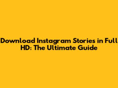 Download Instagram Stories In Full HD: The Ultimate Guide