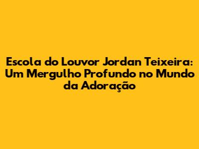 Escola Do Louvor Jordan Teixeira: Aprenda E Eleve Seu Louvor
