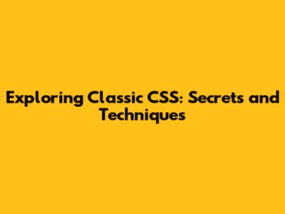 Exploring Classic CSS: Secrets And Techniques