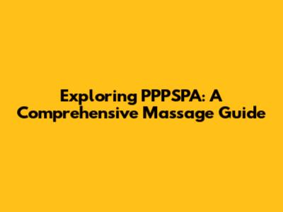 Exploring PPPSPA: Massage Guide