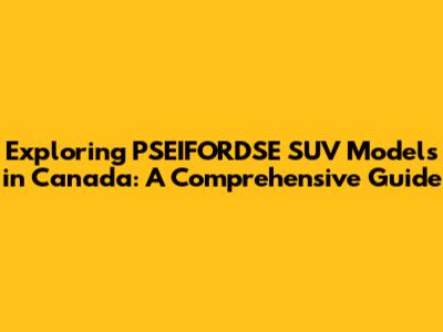 Exploring PSEIFORDSE SUV Models In Canada: A Comprehensive Guide