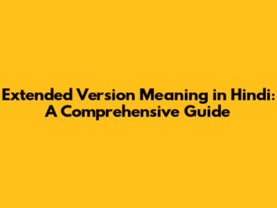 Extended Version Meaning In Hindi: A Comprehensive Guide
