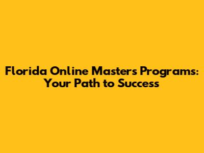 Florida Online Master's Programs: Your Path To Success