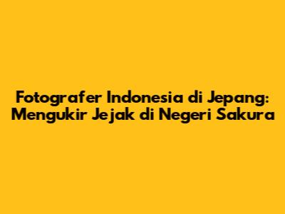Fotografer Indonesia Di Jepang: Peluang, Tips, Dan Pengalaman