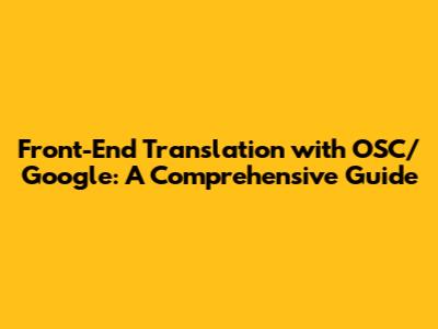Front-End Translation With OSC/Google: A Comprehensive Guide