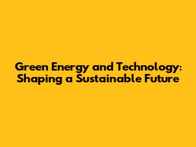 Green Energy And Technology: A Sustainable Future