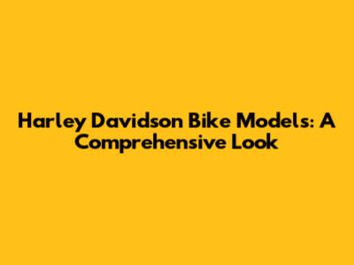 Harley Davidson Bike Models: A Comprehensive Look