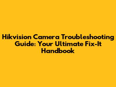 Hikvision Camera Troubleshooting Guide