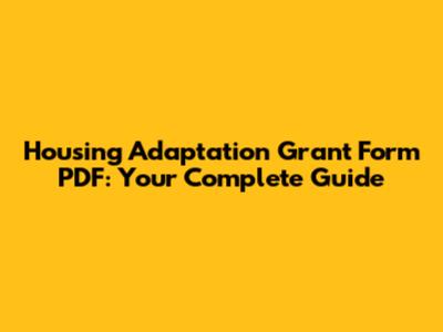 Housing Adaptation Grant: PDF Form & Guide
