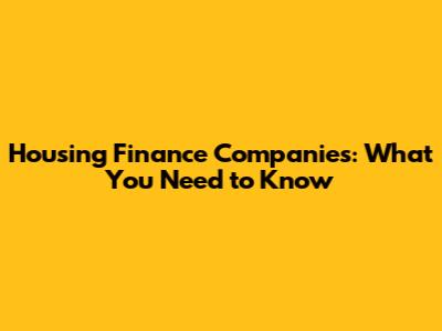Housing Finance Companies: What You Need To Know