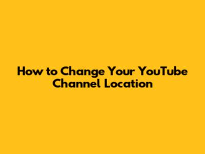 Step-by-Step Guide to Changing Your YouTube Channel Location