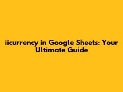 Iicurrency In Google Sheets: Your Ultimate Guide