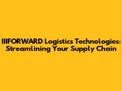 IIIFORWARD Logistics Technologies: Streamlining Your Supply Chain