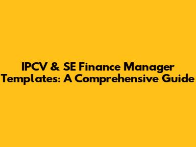 IPCV & SE Finance Manager Templates: A Comprehensive Guide
