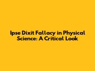 Ipse Dixit Fallacy In Physical Science: A Critical Look