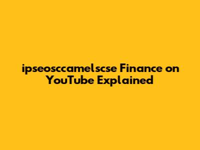 Ipseosccamelscse Finance On YouTube Explained