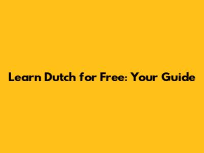 Learn Dutch For Free: Your Guide