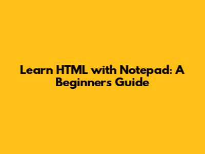 Learn HTML With Notepad: A Beginner's Guide