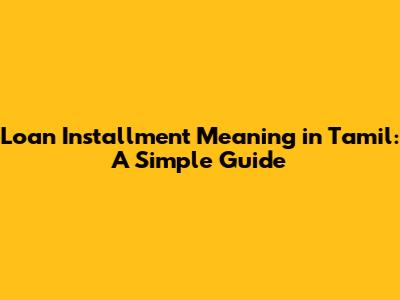 Loan Installment Meaning In Tamil: A Simple Guide