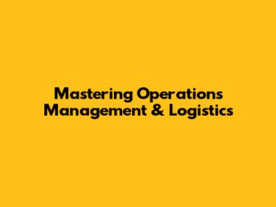 Mastering Operations Management & Logistics