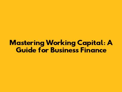 Mastering Working Capital: A Guide For Business Finance