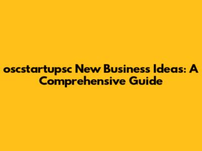 New Business Ideas: Oscstartupsc Guide