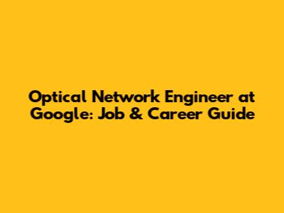 Optical Network Engineer At Google: Job & Career Guide