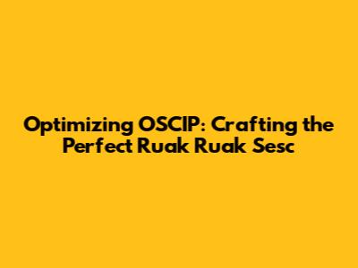 Understanding the Basics: What is OSCIP and Ruak Ruak Sesc?