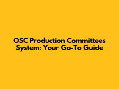 OSC Production Committees System: Your Go-To Guide