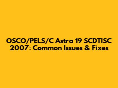 OSCO/PELS/C Astra 19 SCDTISC 2007: Common Issues & Fixes