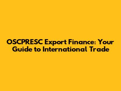 OSCPRESC Export Finance: Your Guide To International Trade