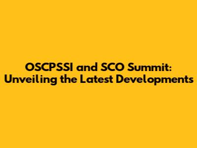 OSCPSSI & SCO Summit: Latest News And Insights